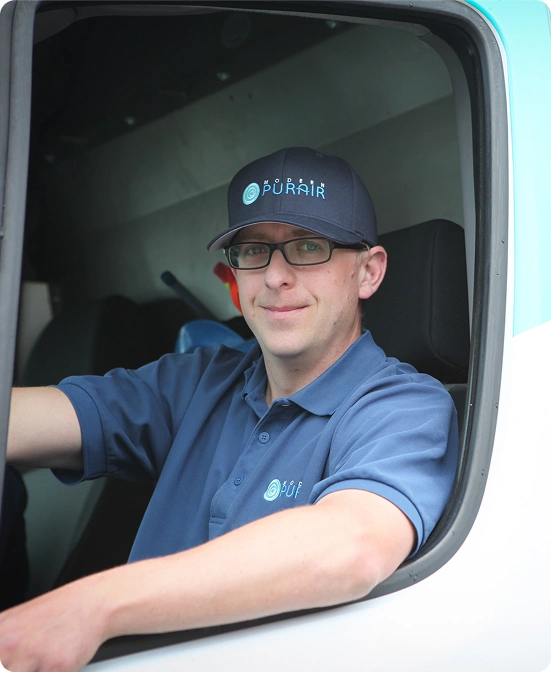 STEP 5 Fast, friendly, on-time service. Book now or call 800-996-3878 for same day service. Our friendly uniformed PURAIR® truck team will call you 15-30 minutes before your 1 hour arrival window.